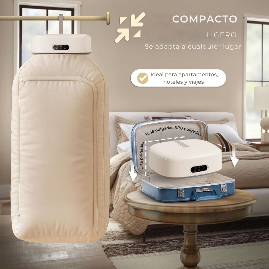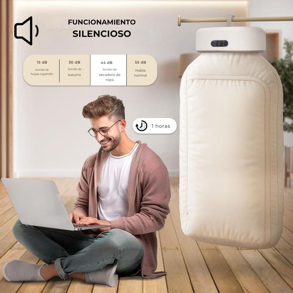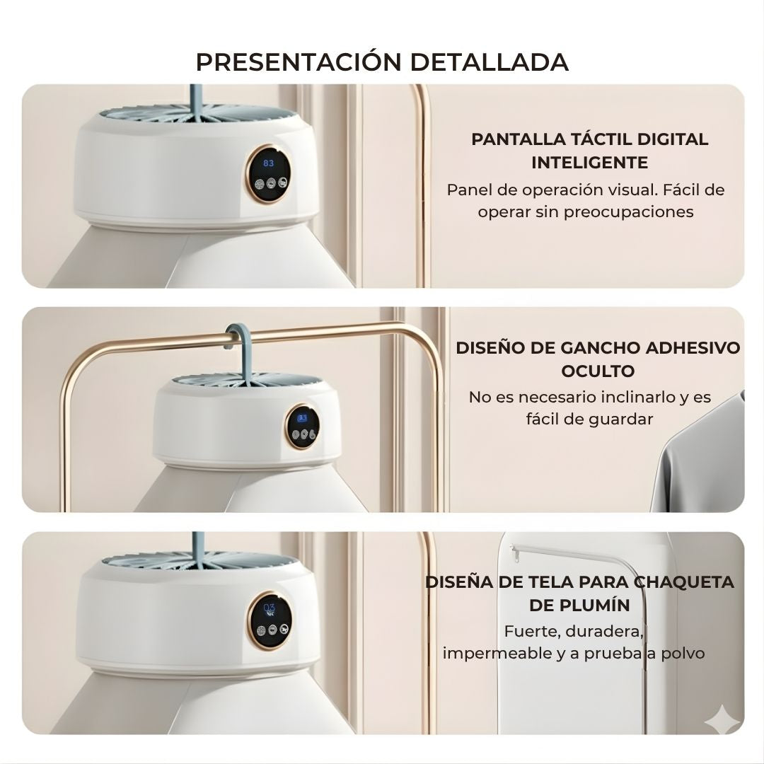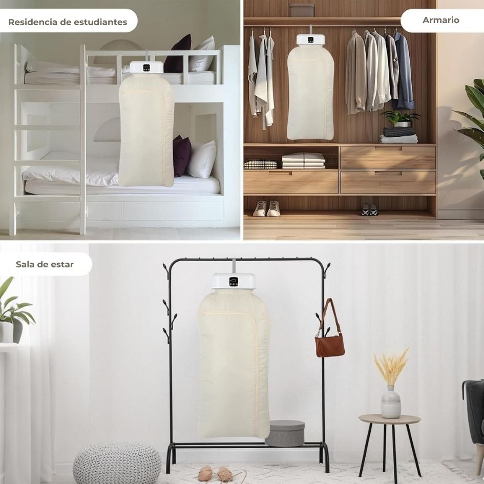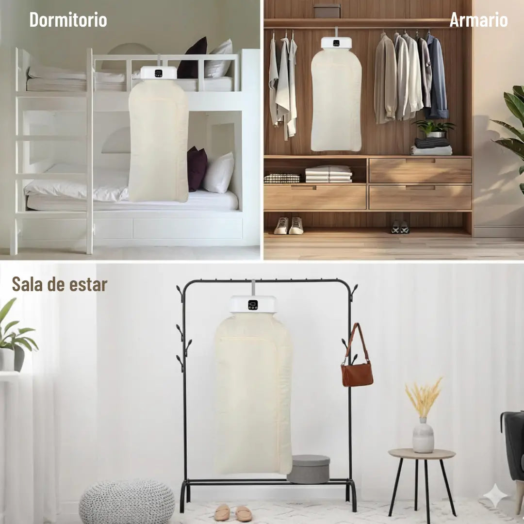 Su sistema de secado tridimensional permite que el aire caliente circule desde todos los ángulos, eliminando la humedad sin dañar la ropa ni dejar zonas húmedas. Además, la bolsa de secado incluida evita que el polvo y los ácaros se adhieran, manteniendo cada prenda limpia y fresca.