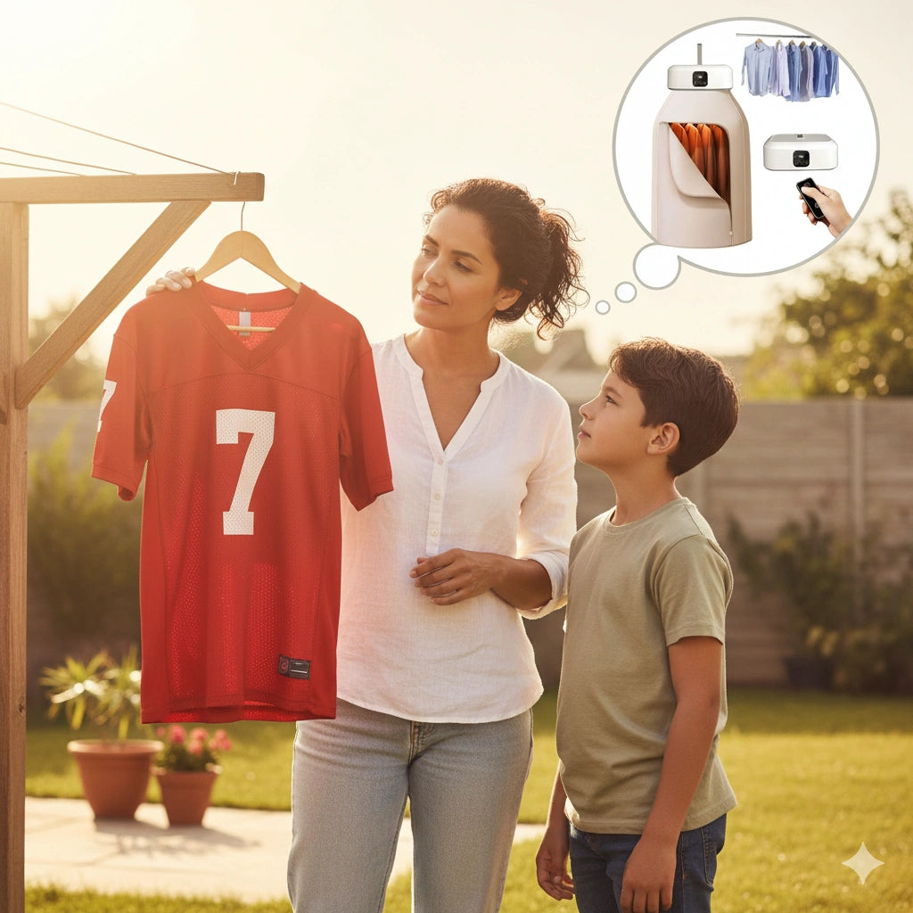 - 💨 Secado rápido en minutos, sin depender del clima.